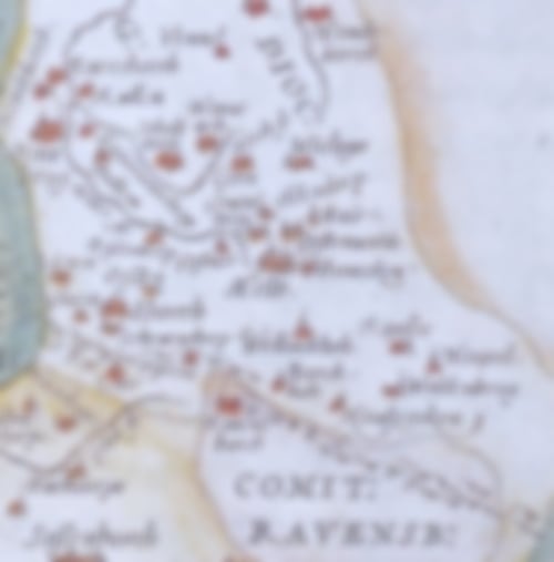 Für unseren Raum sind die Orte Melle, Oldendorf (Oldendorp), Buer (Buir), Riemsloh (Rimsloe), Neuenkirchen (Nieukercken), Wellingholzhausen (Wellinckhole), Gesmold (Gesmer) gut wiedergegeben. Der Verlauf der Hase, sie beginnt hier in Melle, ist relativ genau bis zur Ems eingetragen.